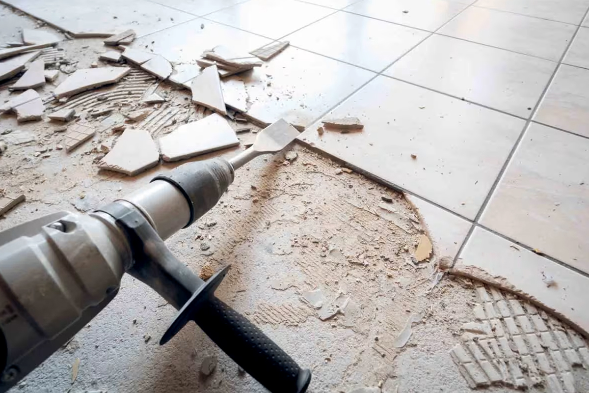We offer expert tile removal services aimed at effectively and securely eliminating aged or broken tiles from your premises